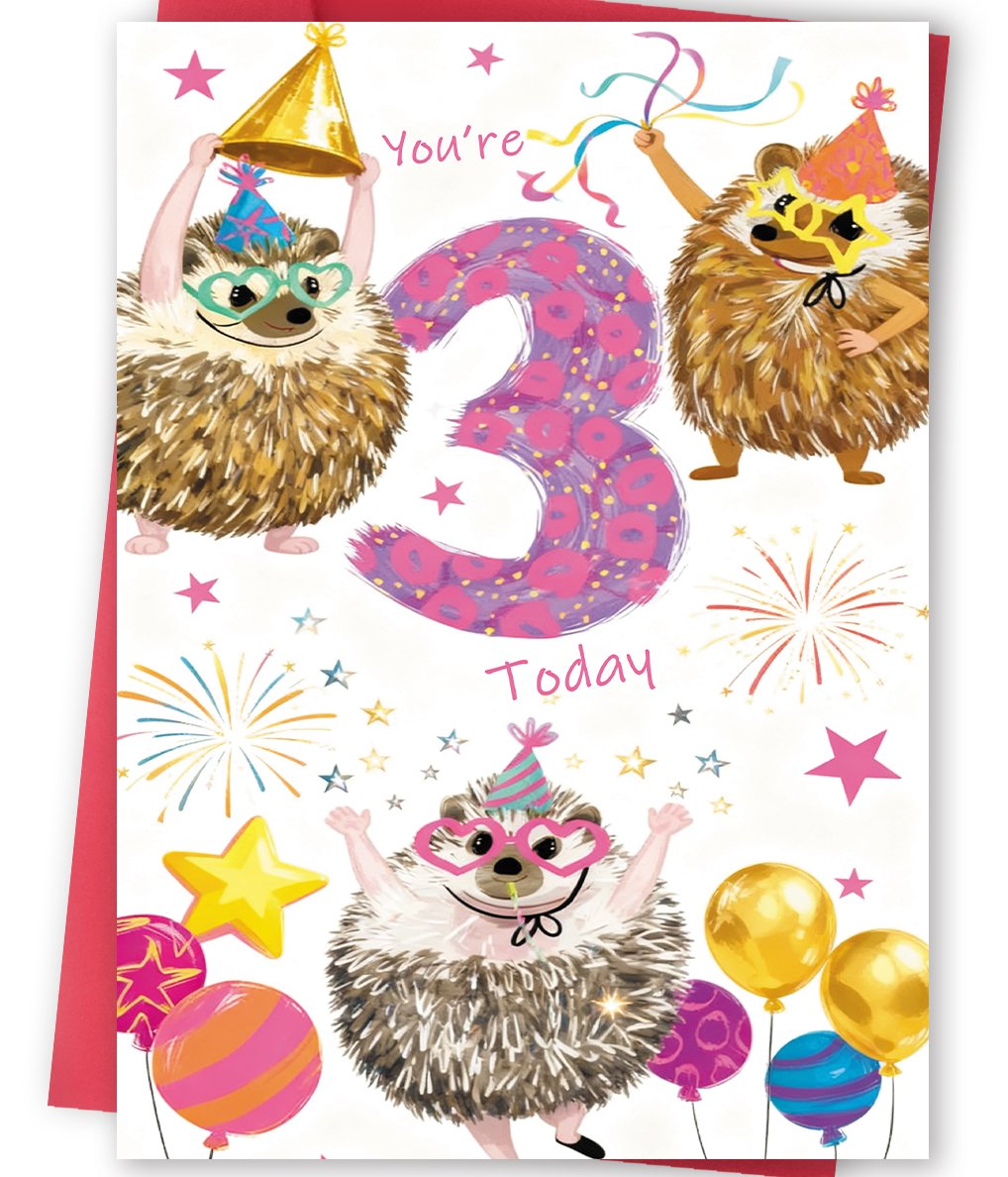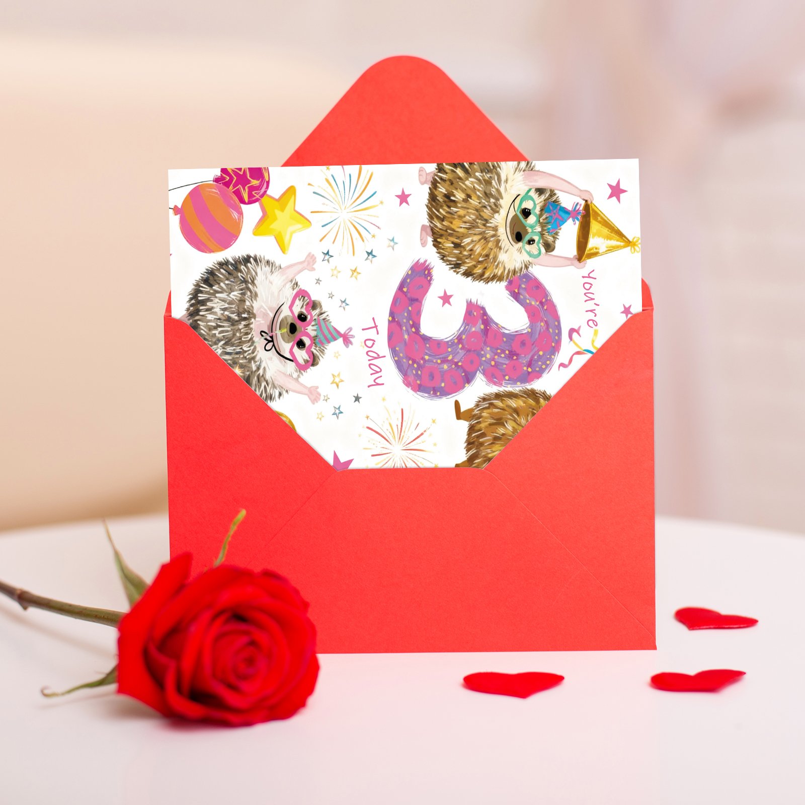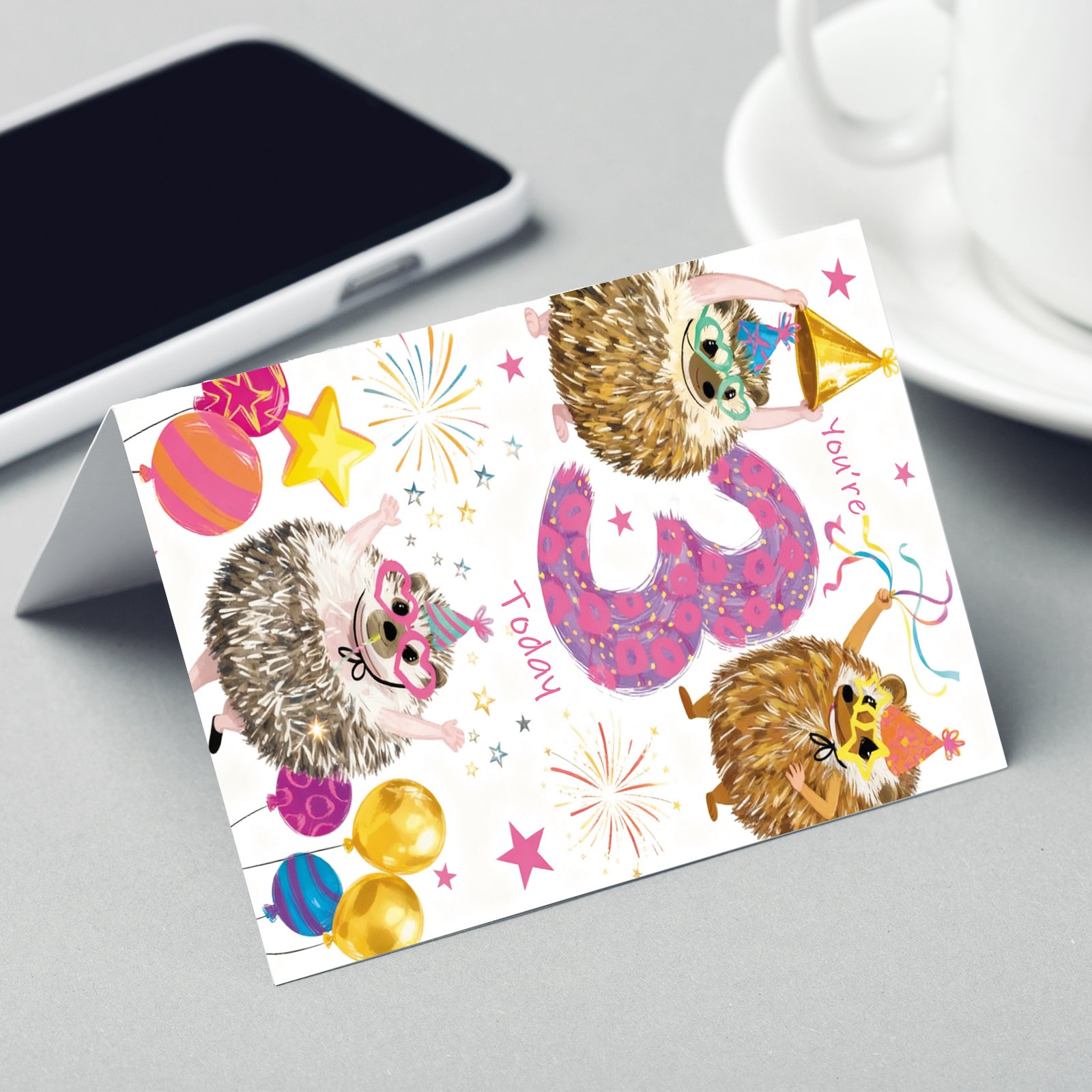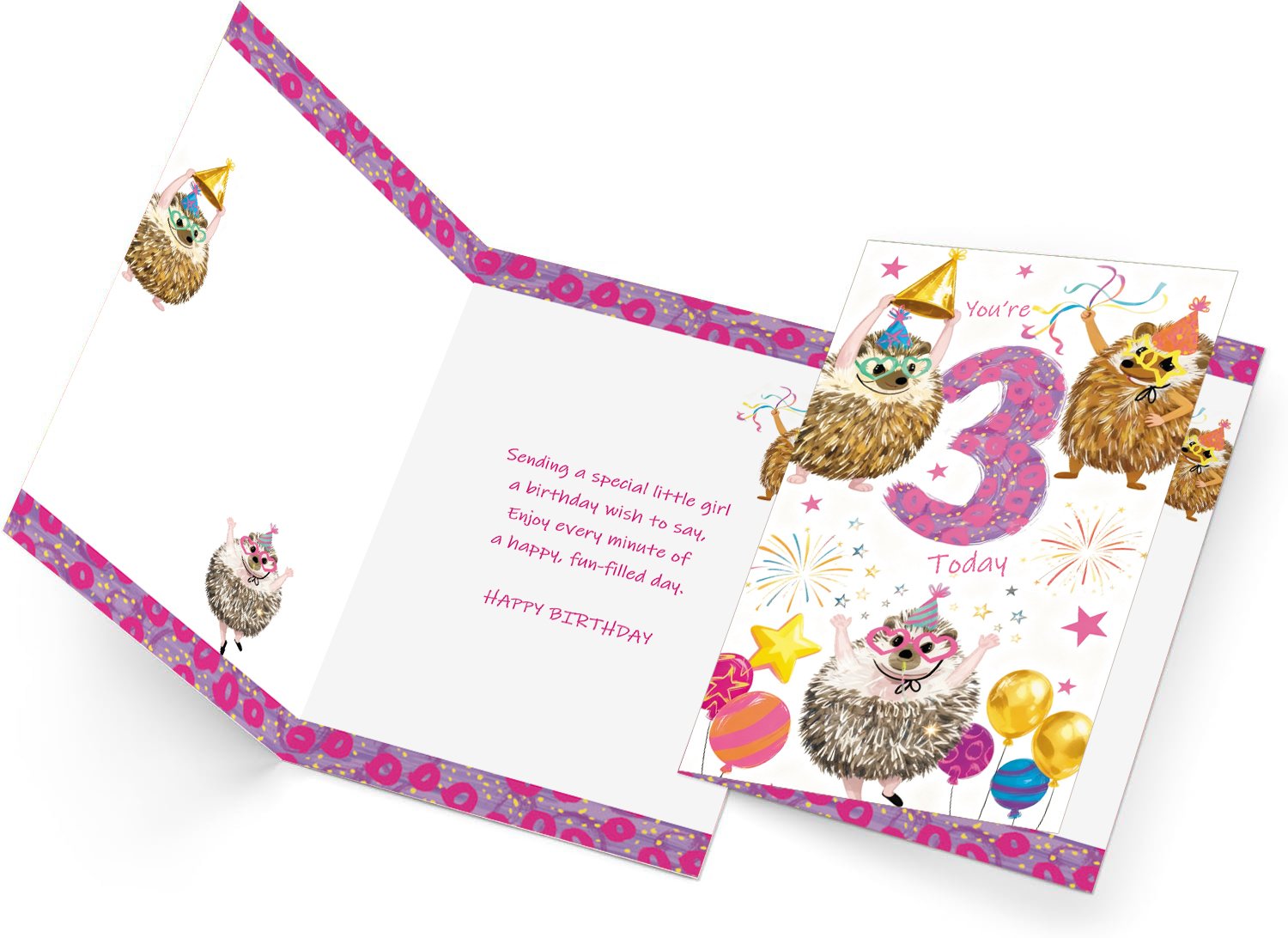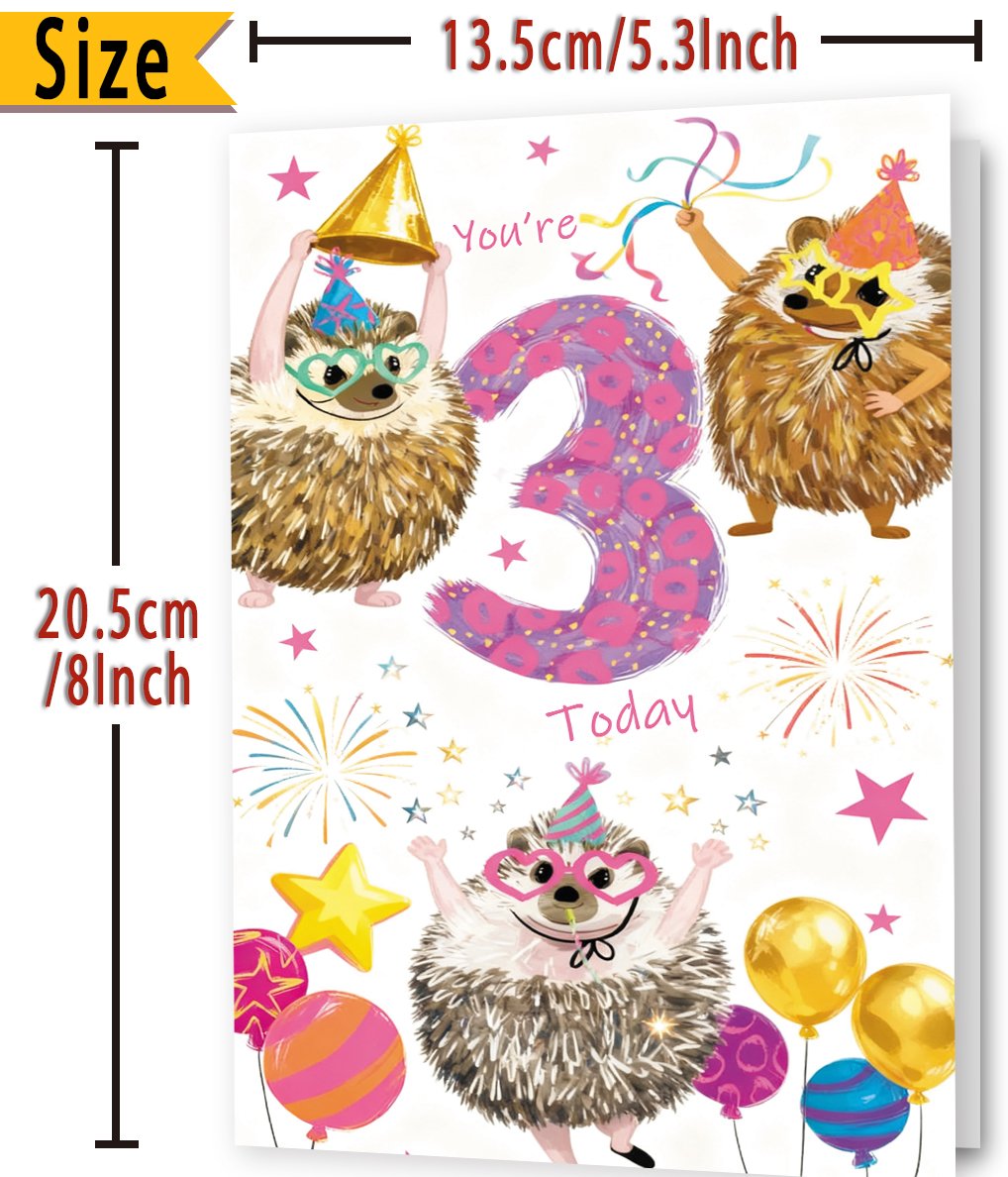 3 Year Old Birthday Card for Girls Her, 3rd Birthday Card for Daughter Granddaughter Niece, Hedgehog Bday Decoration Ides3 Year Old Birthday Card for Girls Her, 3rd Birthday Card for Daughter Granddaughter Niece, Hedgehog Bday Decoration Ides