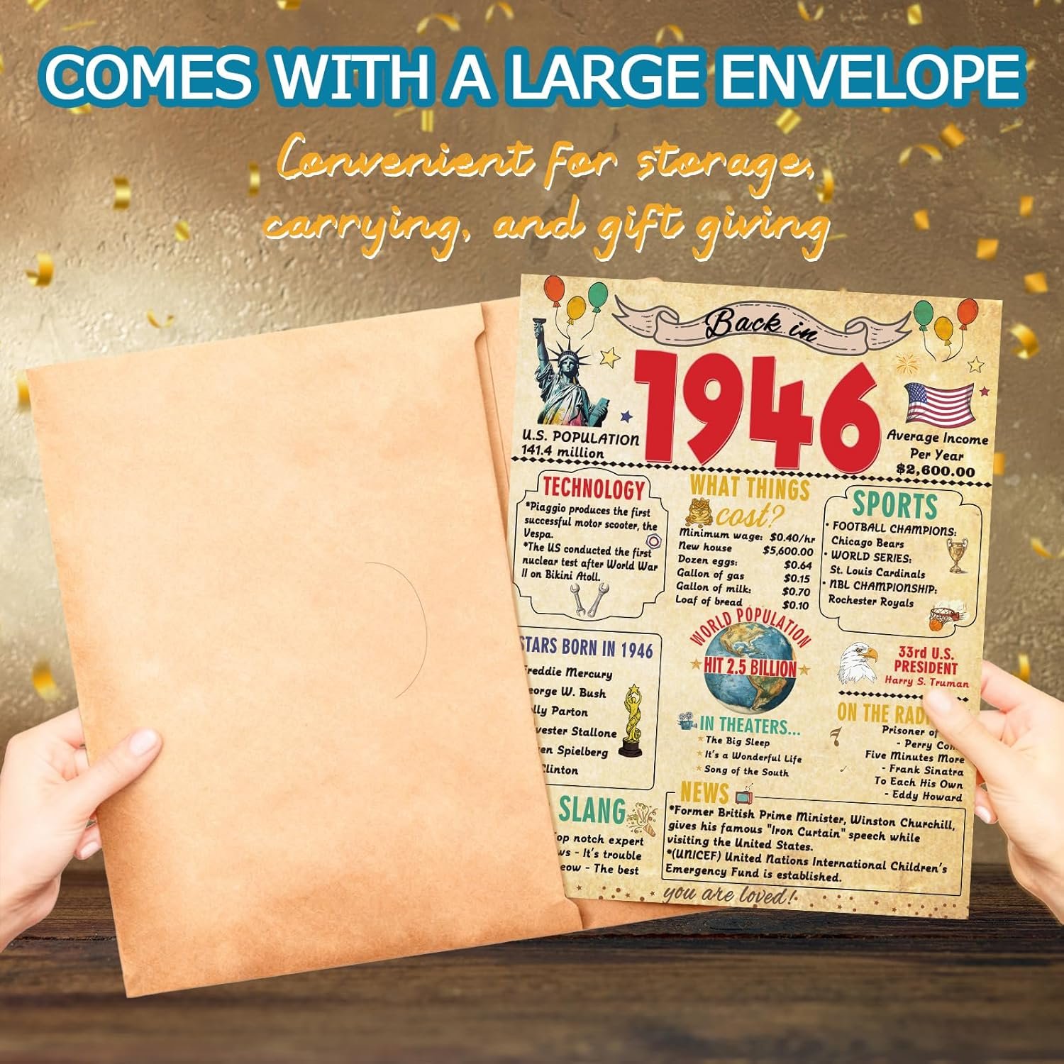 • Product Introduction– Find interesting one a double sided 80 birthday card for your family or friends. The cards contain some specific events which can help you review interesting facts with with you loved.