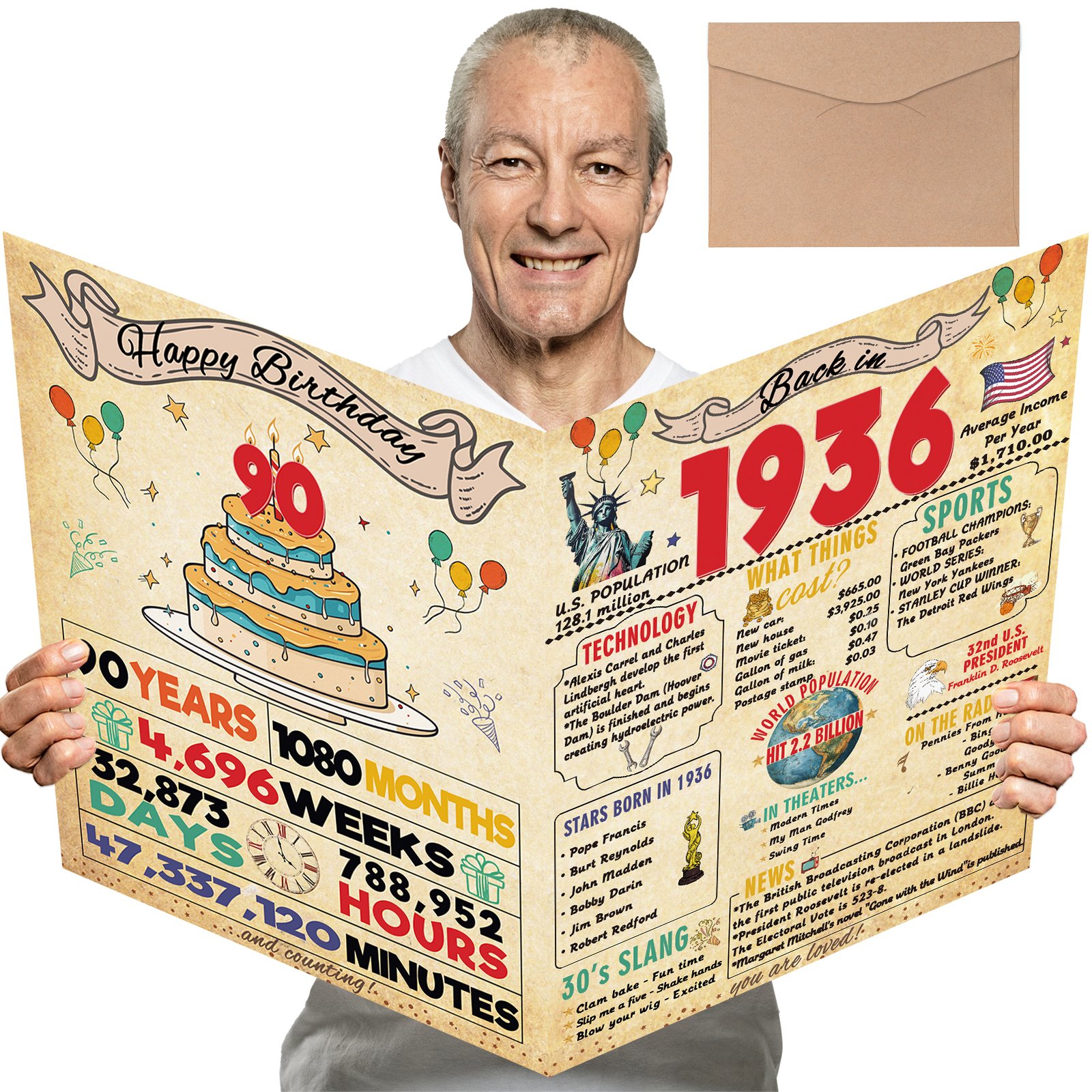 Funny 90th Birthday Card Gifts for Women Men, Retro 90th Birthday Decoration for Mom Dad Grandma Grandpa, Gifts for 90 Year Old Woman ManFunny 90th Birthday Card Gifts for Women Men, Retro 90th Birthday Decoration for Mom Dad Grandma Grandpa, Gifts for 90 Year Old Woman Man