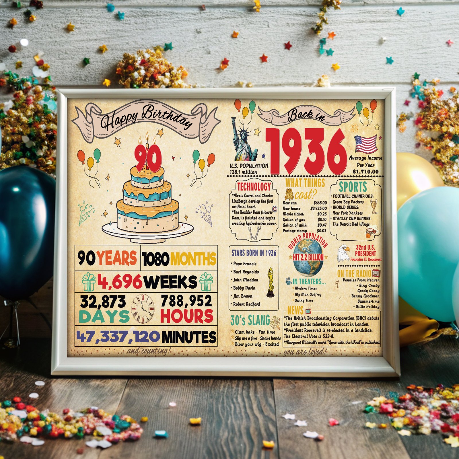 • Product Introduction– Find interesting one a double sided 90 birthday card for your family or friends. The cards contain some specific events which can help you review interesting facts with with you loved.