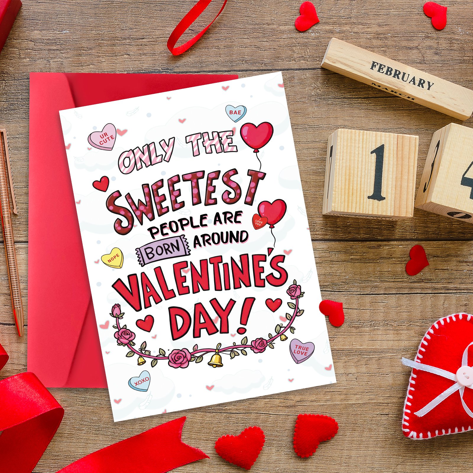 - Printed on quality 300gsm recycled, smooth card stock and comes with a matching red envelope.