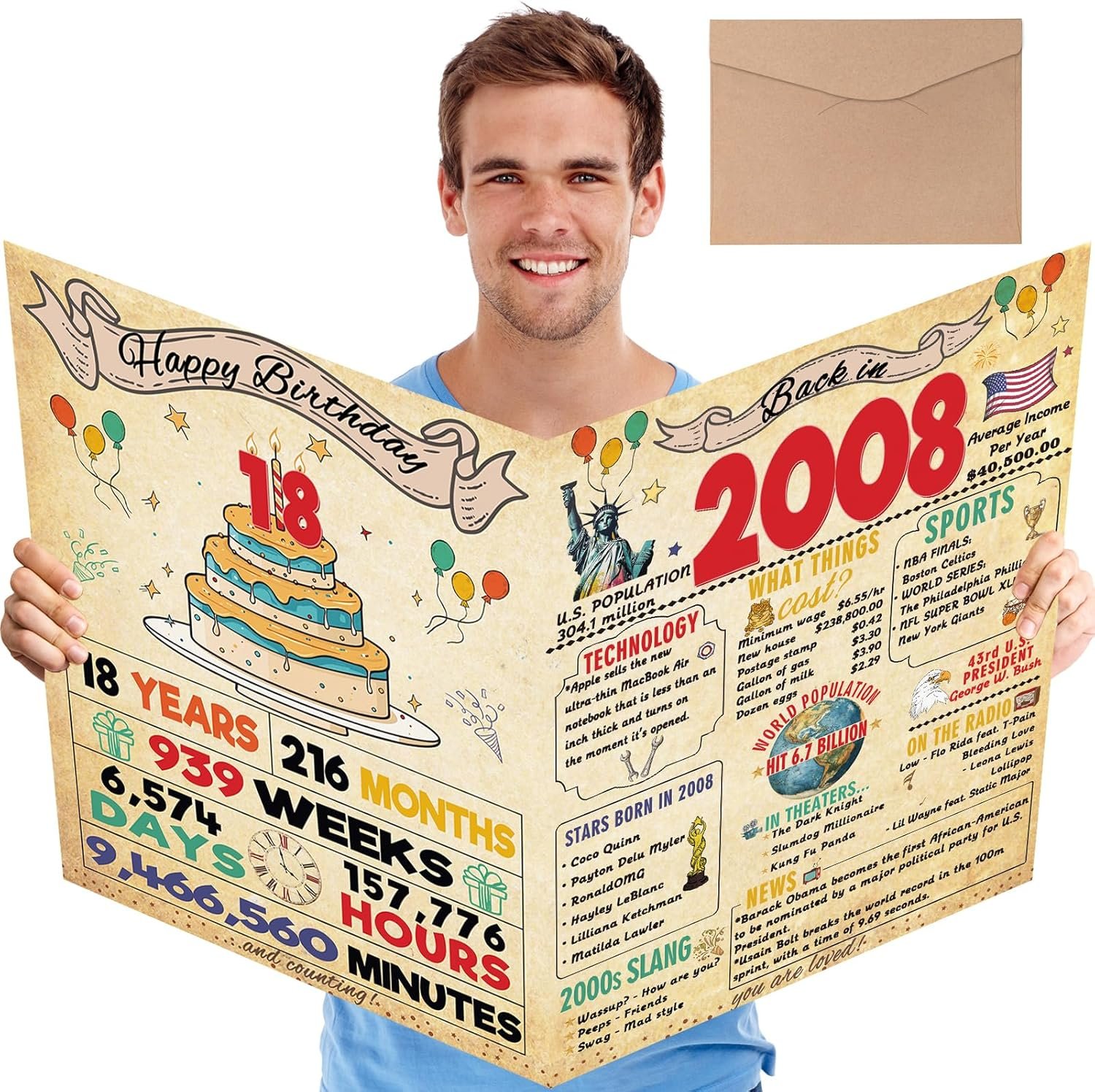 Happy 18th Birthday Card Gifts for Him Her, Retro 18th Birthday Decorations for Boys Girls, Best Gifts for 18 Year Old Son Daughter