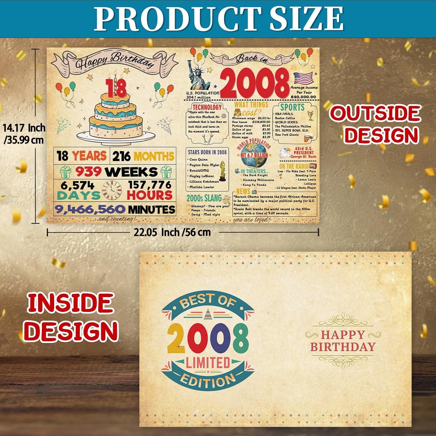 - Product Introduction– Find interesting one a double sided 18 birthday card for your family or friends. The cards contain some specific events which can help you review interesting facts with with you loved.