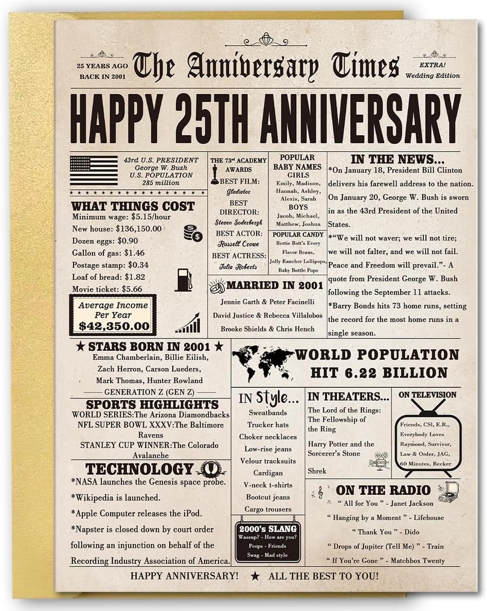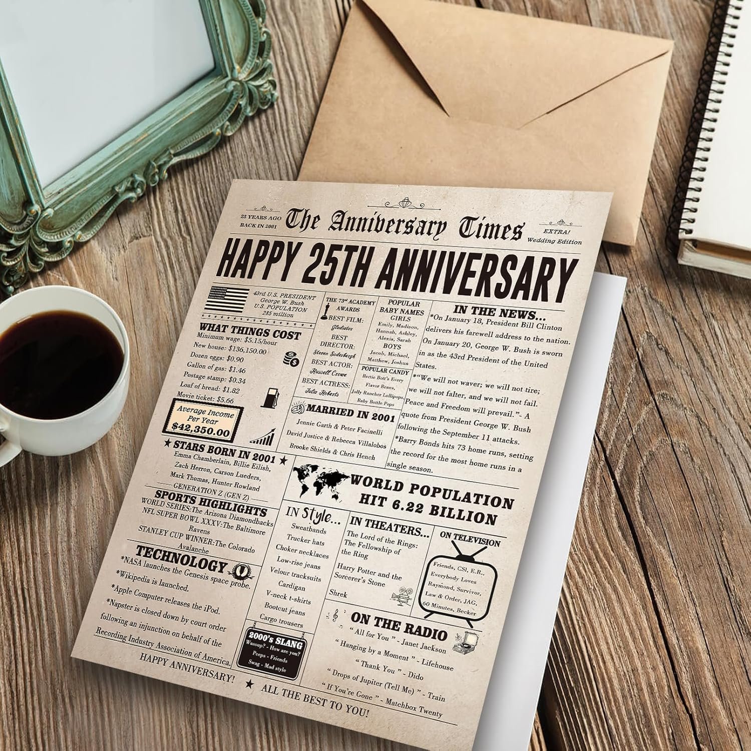 - Product Introduction– Find interesting one a single sided 25 year Anniversary card for your lover. The cards contain some specific events which can help you review interesting facts with with you loved