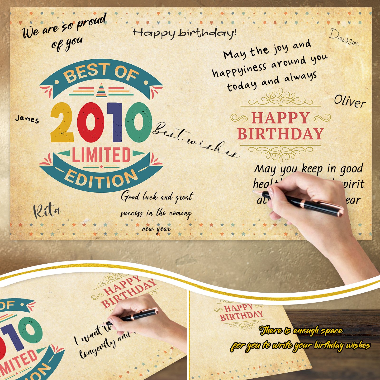- Internal White Background– It can serve as a birthday signature book, providing a great writing place for guests to sign at your birthday party and is perfect for long term storage for keepsakes!
